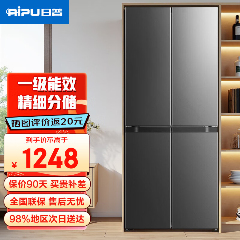 日普(RIPU)冰箱双开门家用十字对开门四开门多门风冷无霜大容量家用电冰箱一级能效电子控温超薄可嵌入 【十字门】426升一级能效【纤薄嵌入】