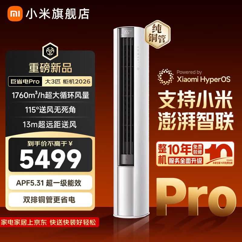 小米(MI)空调米家2匹/3匹巨省电Pro 立式柜机 大风口柔风新风自然风快速制冷暖变频家用低噪智能互联自清洁 大3匹 超一级能效 26新款巨省电Pro【新升级】