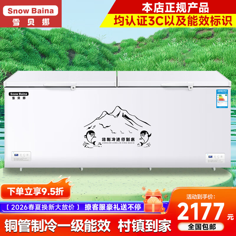 雪贝娜冰柜商用大容量全冷冻家用双温卧式冷柜展示柜 1388双温双机【双倍制冷一半冷藏一半冷冻】