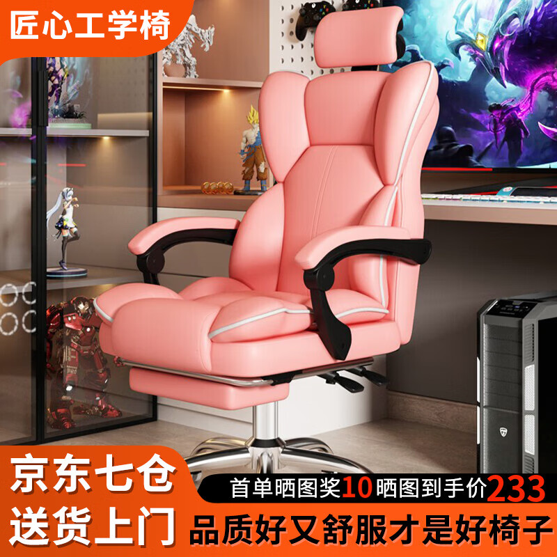 奥伦福特 电脑椅办公椅子电竞椅家用人体工学椅老板椅主播靠背椅皮革转椅 创意工学椅-樱花粉+搁脚