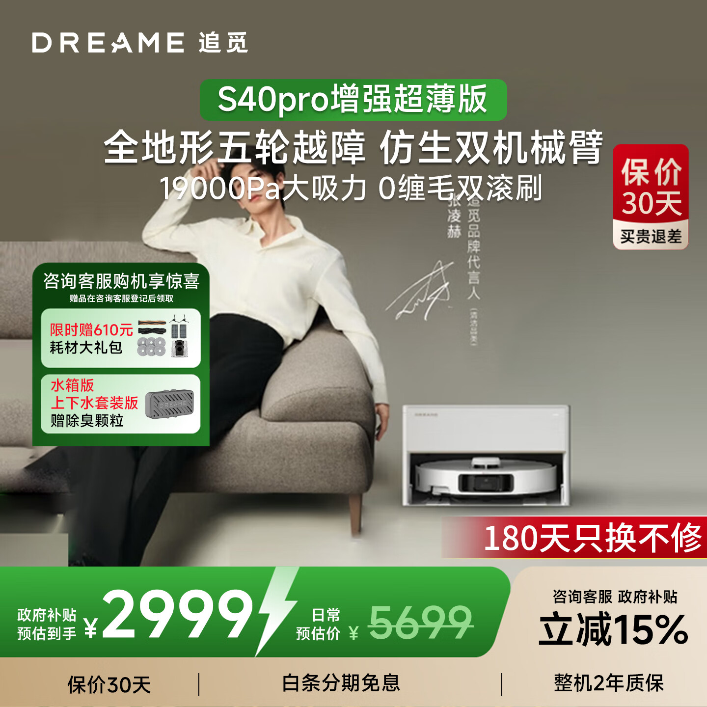 追觅S40增强【春晚同款】 扫地机器人扫拖洗烘一体全自动清洗基站仿生双机械臂越障拖地机 【咨询享升级】S40Pro增强-超薄上下水版