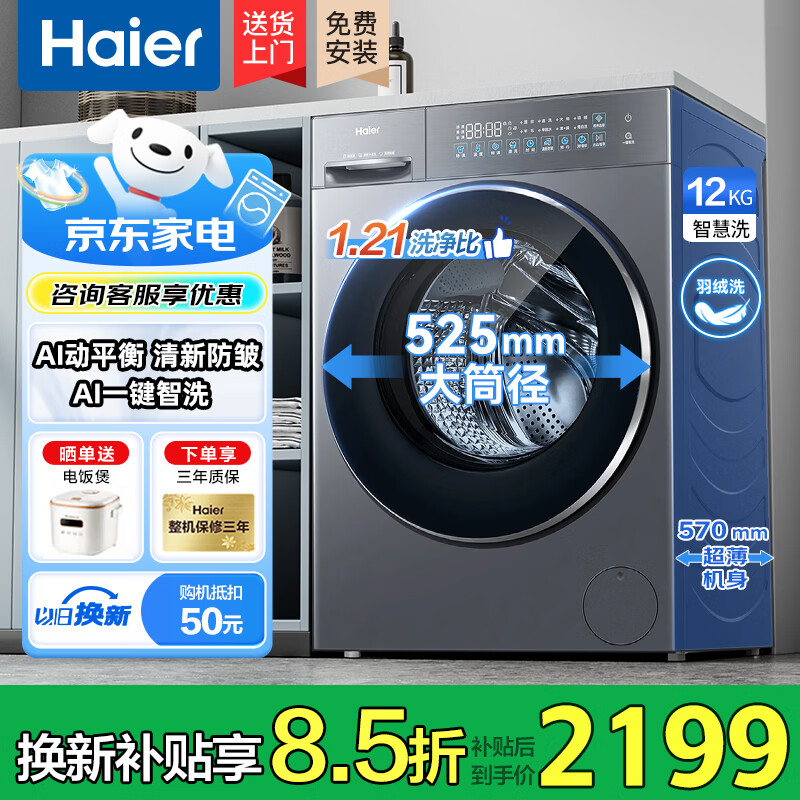 海尔(Haier)滚筒洗衣机10公斤全自动洗烘一体带烘干一级能效除螨菌超薄机身以旧换新补贴 海尔58A1|清新防皱 滚筒单洗 12kg 咨询客服更优惠