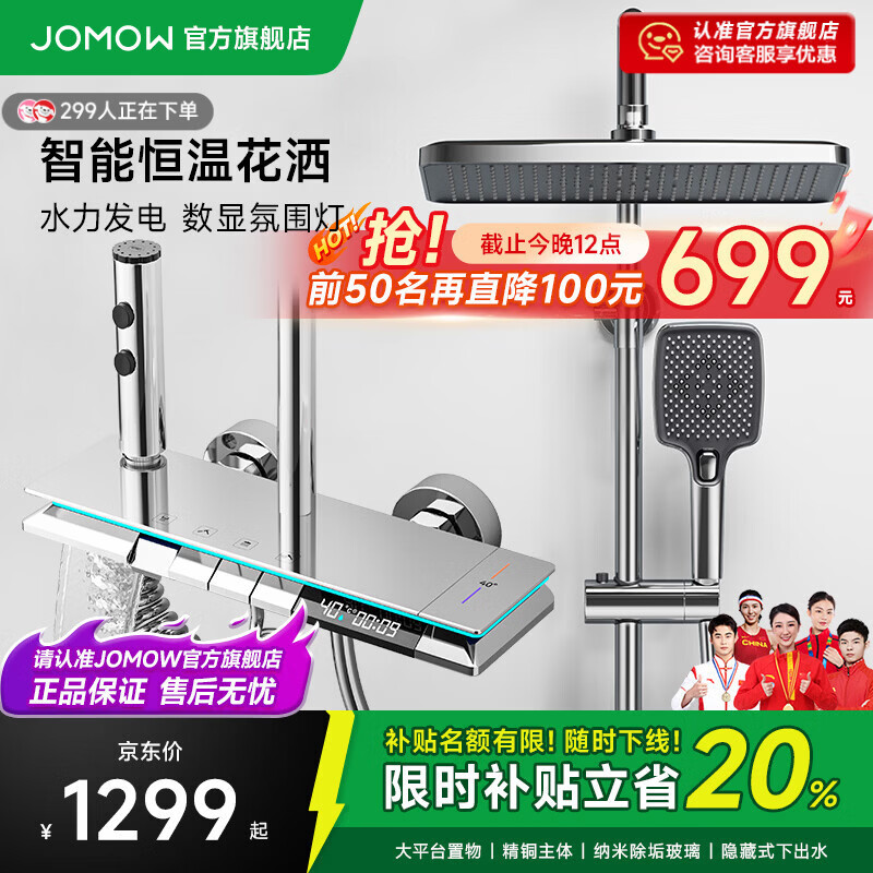 JOMOW卫浴恒温淋浴花洒套装全套一体全铜一体式上门安装2025新款花洒 W9电镀银色【智能恒温+水温实时显示】包安装/拆旧