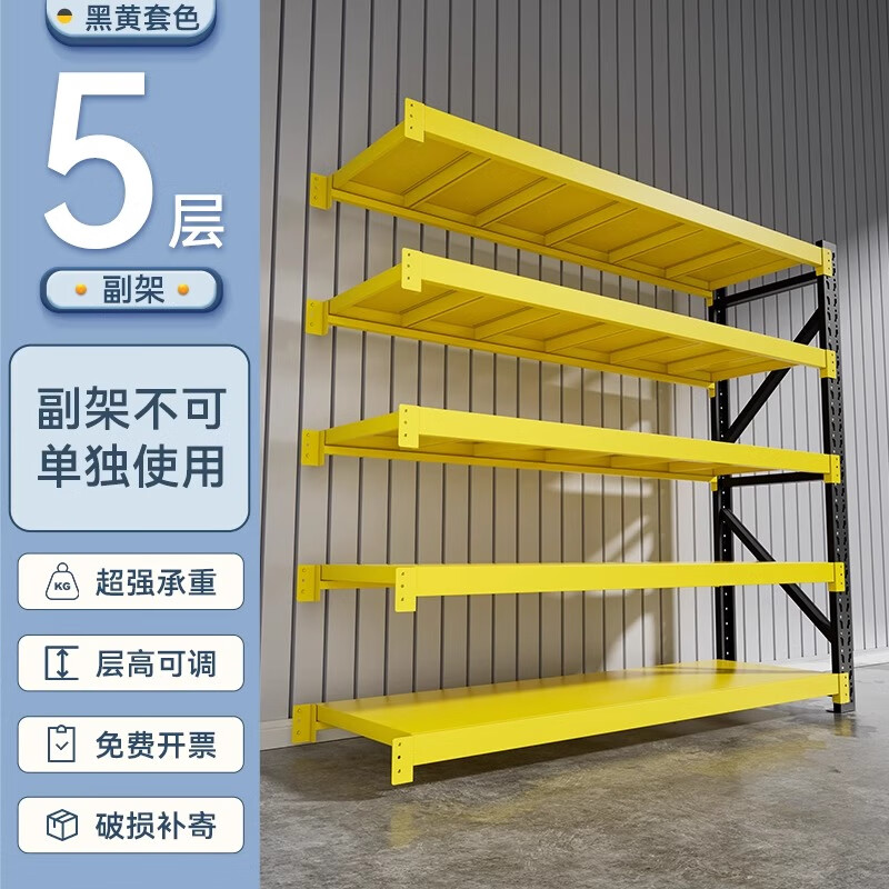 建耀货架仓储置物架库房家用多层储物架加厚重型储物铁架 黑黄-五层-副架 加厚款120*50*200 承重270KG/层