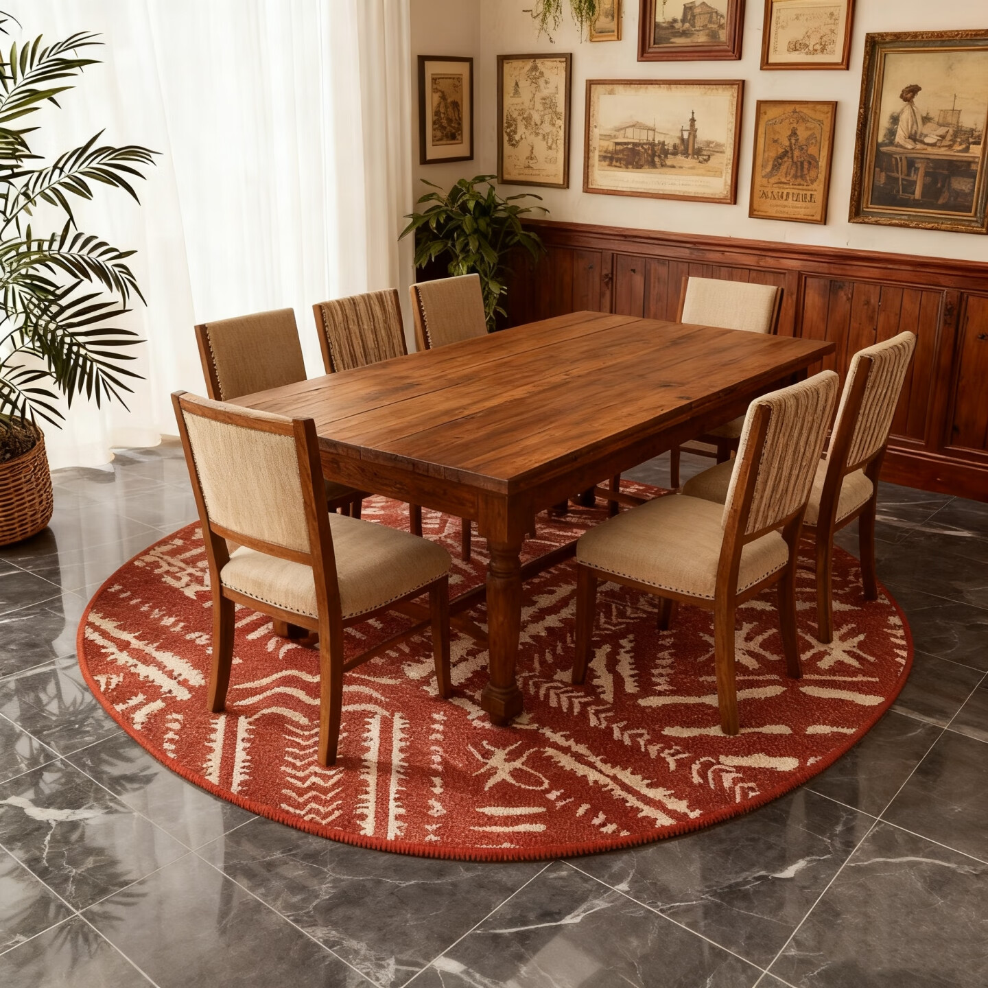 欧纶斯(Oulens)圆形地毯轻奢风高级感客厅地垫茶几毯卧室门口沙发床边毯可水洗 印第安red 100cm*100cm 【可水洗不掉色】