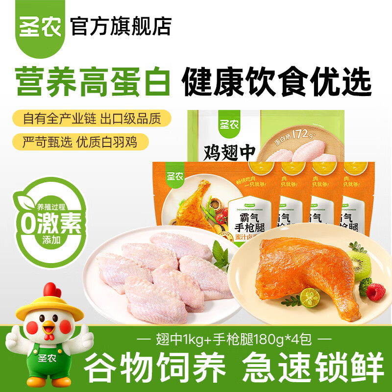 圣农鸡翅中鸡胸肉生鲜轻食餐食品火锅食材 翅中单只30g-40g 翅中1kg+手枪腿4包