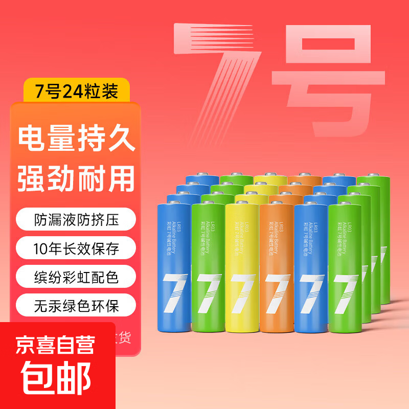 【小米同款色彩】高能彩虹碳性电池5号电池钟表玩具计算器电池7号电池空调遥控器鼠标/颜色随机 高能彩虹碱性7号-【24粒】放电更持久