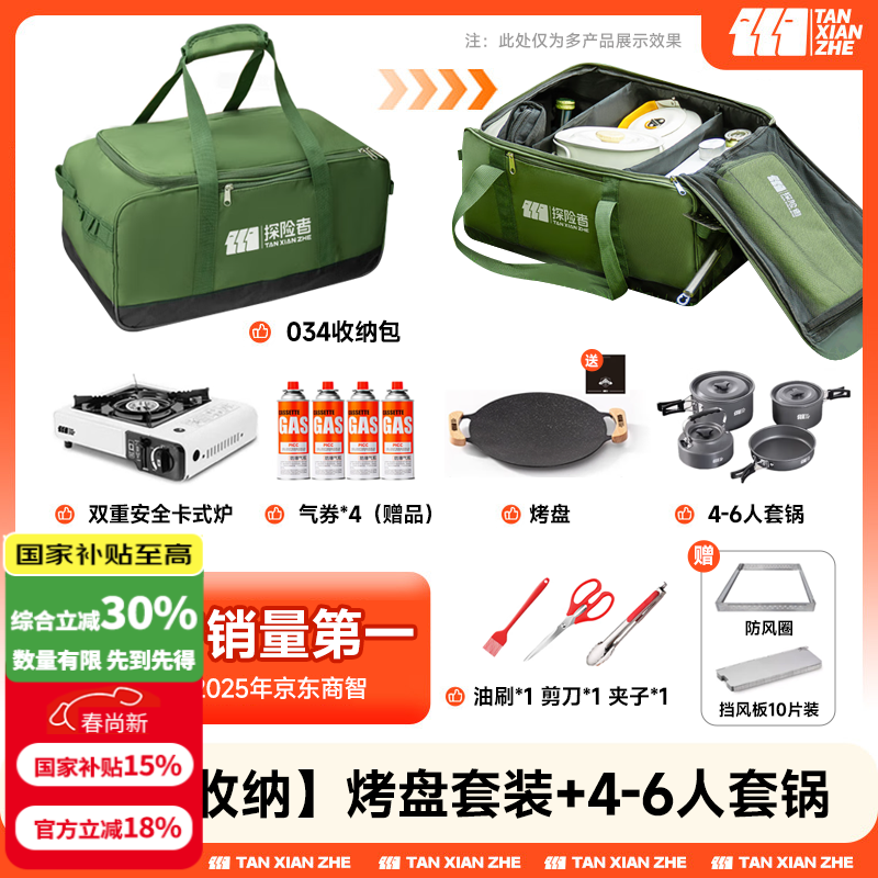 探险者(TAN XIAN ZHE)户外卡式炉露营炉具便携式野外煮火锅炉子卡磁炉全套带锅野餐套装 升级【全包收纳】烤盘+4-6人套锅