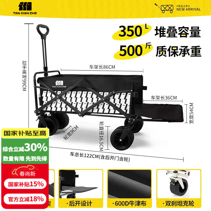 探险者露营车折叠推车户外露营儿童小推车营地车拉年货小拖车聚拢型推车 350L 印花限定-双刹坦克轮+后开
