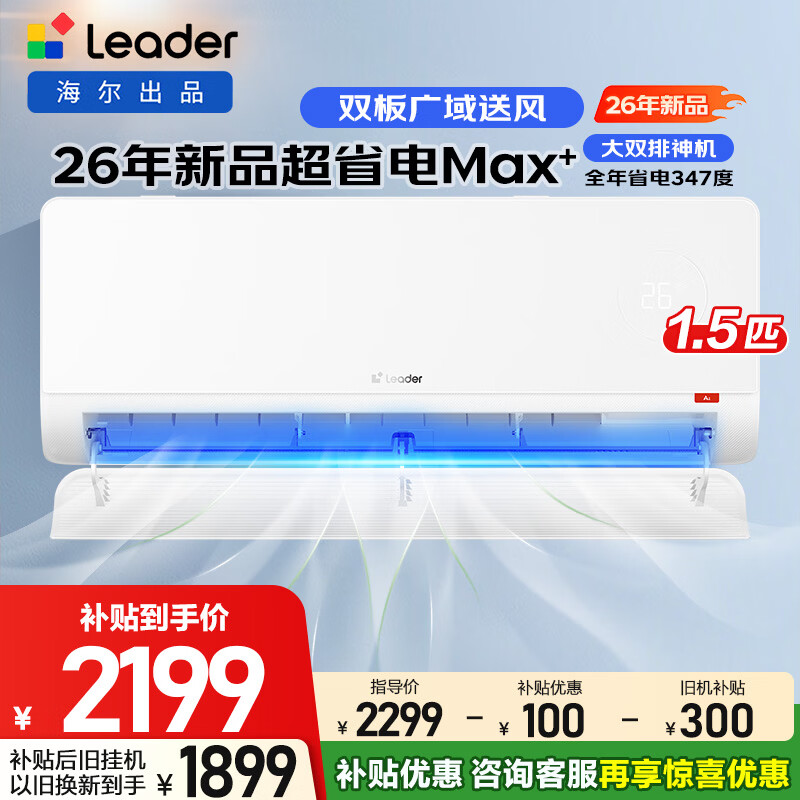 海尔空调出品统帅1.5匹/2匹/3匹一级能效超省电节能制冷暖热变频自清洁纯铜管家用大挂机以旧换新补贴 1.5匹 一级能效【超省电Max+】双排铜管省电