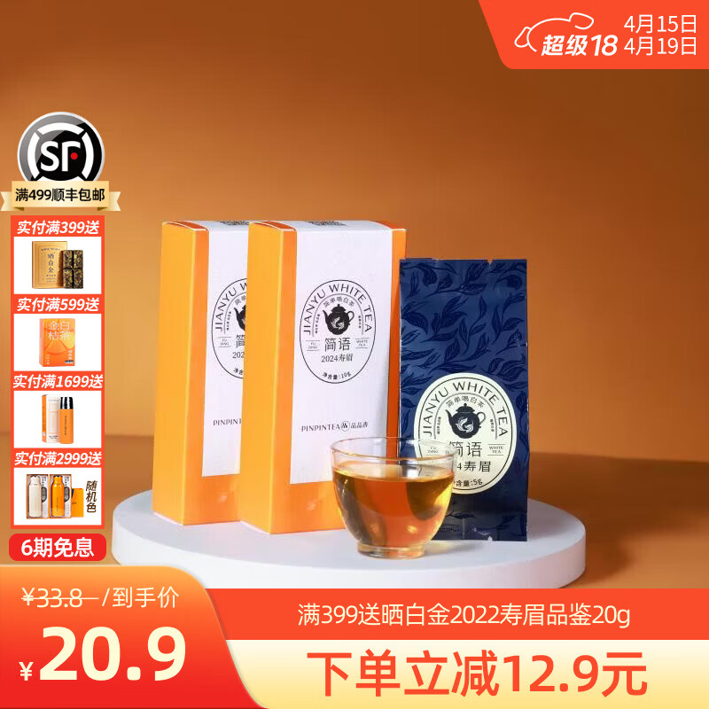 品品香福鼎白茶 寿眉老白茶礼盒装散茶口粮茶 茶叶自己喝 【尝鲜套装】2024年原料寿眉 10g*2盒