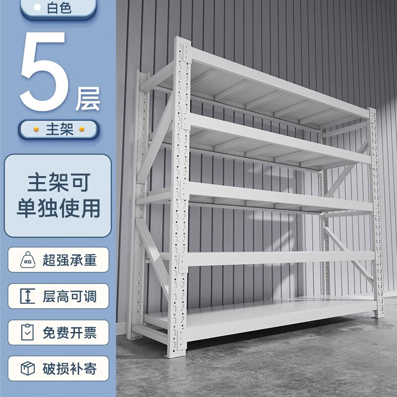 建耀货架仓储置物架库房家用多层储物架加厚重型储物铁架 白色-五层-主架 常规款105*40*200 承重210KG/层