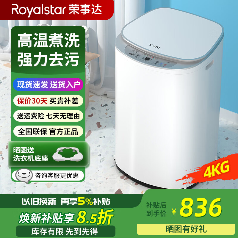 荣事达【高端系列】迷你高温煮洗4kg婴儿洗衣机全自动杀菌蓝光洗脱一体机家用儿童小型3.5公斤宝宝风干 4KG白【高温煮洗+多挡温度可调】不锈钢 波轮