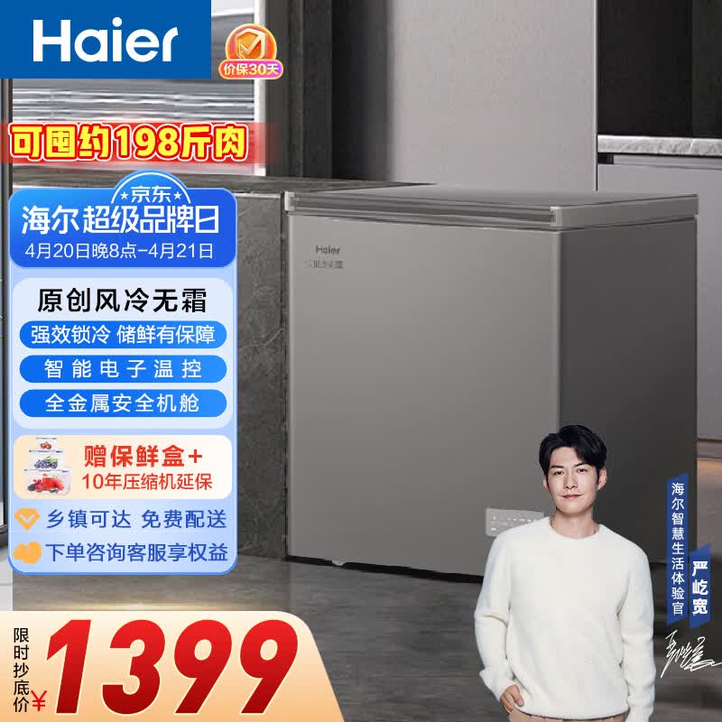 海尔(Haier)159/201/242升风冷无霜家用商用冰柜 冷藏冷冻柜小冰柜家用商用母乳小型冰箱冷柜以旧换新 BC/BD-132WGHEG9D 132L