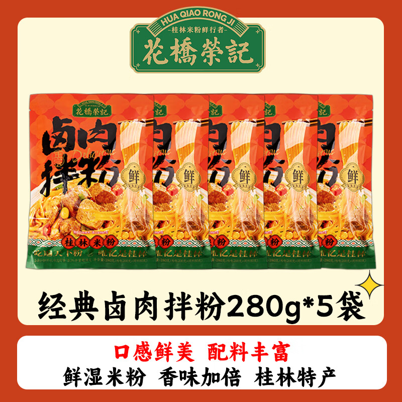 花桥荣记正宗桂林米粉方便速食袋装米粉美食广西特产桂林米粉免煮免煮即食 卤肉拌粉【280g*5袋】