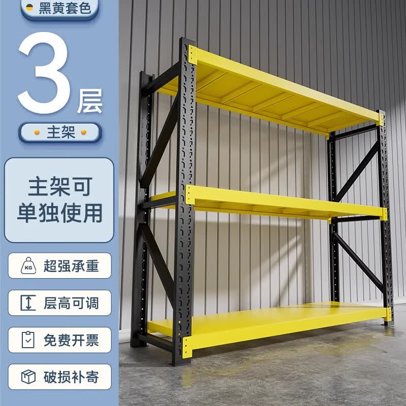 建耀货架仓储置物架库房家用多层储物架加厚重型储物铁架 黑黄-三层-主架 加厚款150*60*200 承重270KG/层