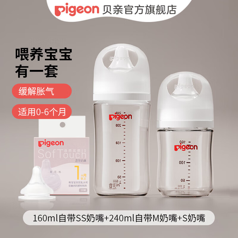 贝亲奶瓶 婴儿奶瓶 新生儿防胀气奶瓶 宽口径玻璃奶瓶【渠道专享】 160ml 0-3个月 +240ml 3-6月+S 玻璃奶瓶