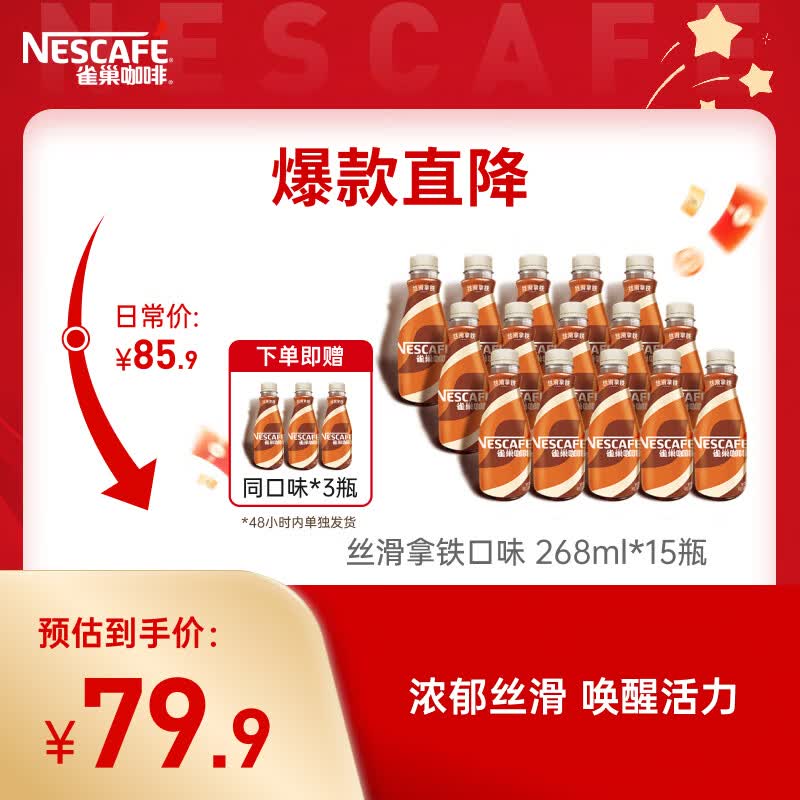 雀巢(Nestle) 即饮咖啡 丝滑拿铁口味 咖啡饮料 268ml*18瓶