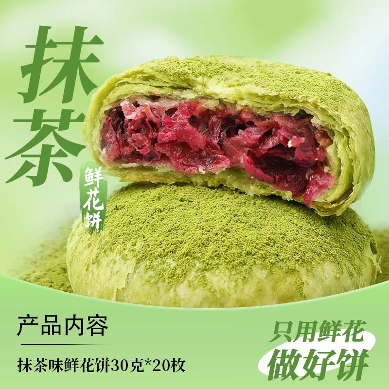 滇国土司鲜花饼云南特产玫瑰花饼休闲零食饼干糕点茶点早餐零食独立包装 抹茶味30g*20枚【店长推荐】