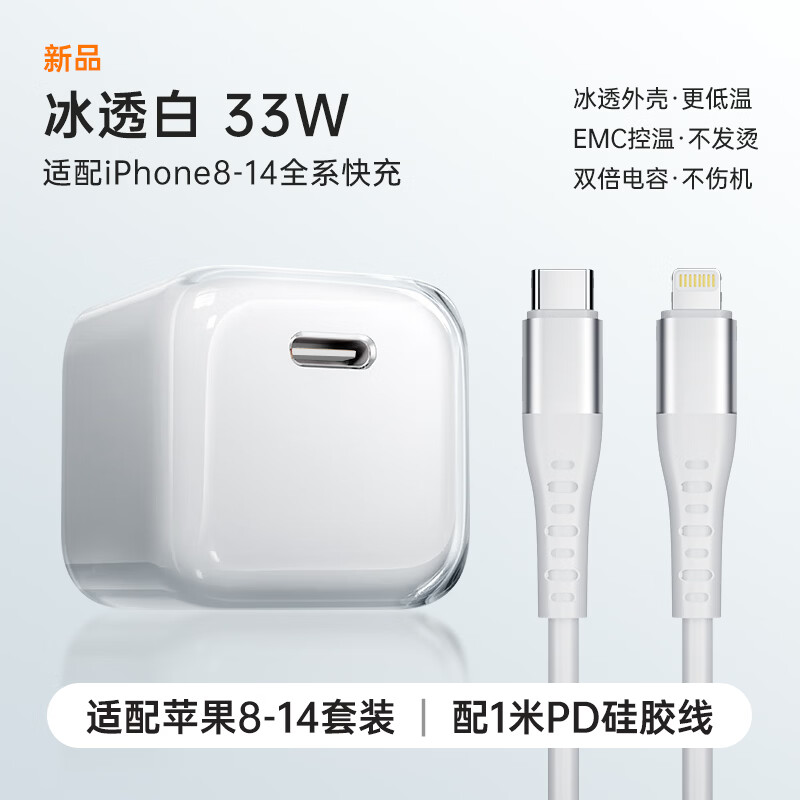 Viken【直营正品】适用苹果17/16/15充电器头40W/45W正品套装iPhone17/16/15proMax/pro电源适配器线 【适配苹果6-14】33W充电头+1米硅胶闪充线 安全认证不伤机