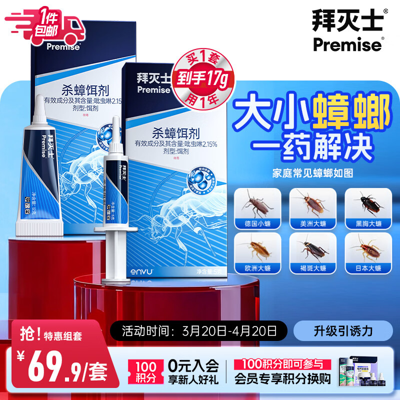 拜灭士拜耳蟑螂药蓝珠杀蟑胶饵12g+5g灭蟑室内虫卵双杀家用升级款