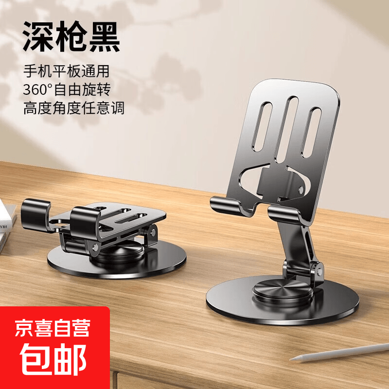 【超值包邮】胡桃纹仿木质感桌面金属可折叠旋转手机支架懒人直播便携耐用苹果安卓鸿蒙手机通用 特惠款-灰【全金属】360°旋转折叠(008-2)