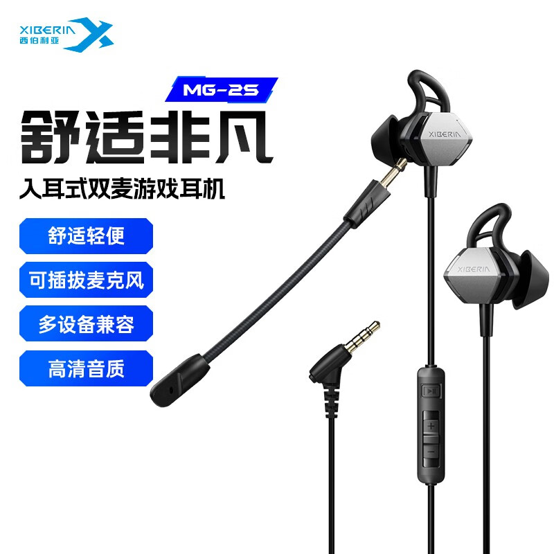 西伯利亚(XIBERIA)MG-1/PRO 入耳式游戏耳机有线 电竞电脑手机耳麦 7.1音效高清通话可拆卸麦克风 吃鸡会议直播带麦 MG-2S铁灰【3.5mm手游】升级版