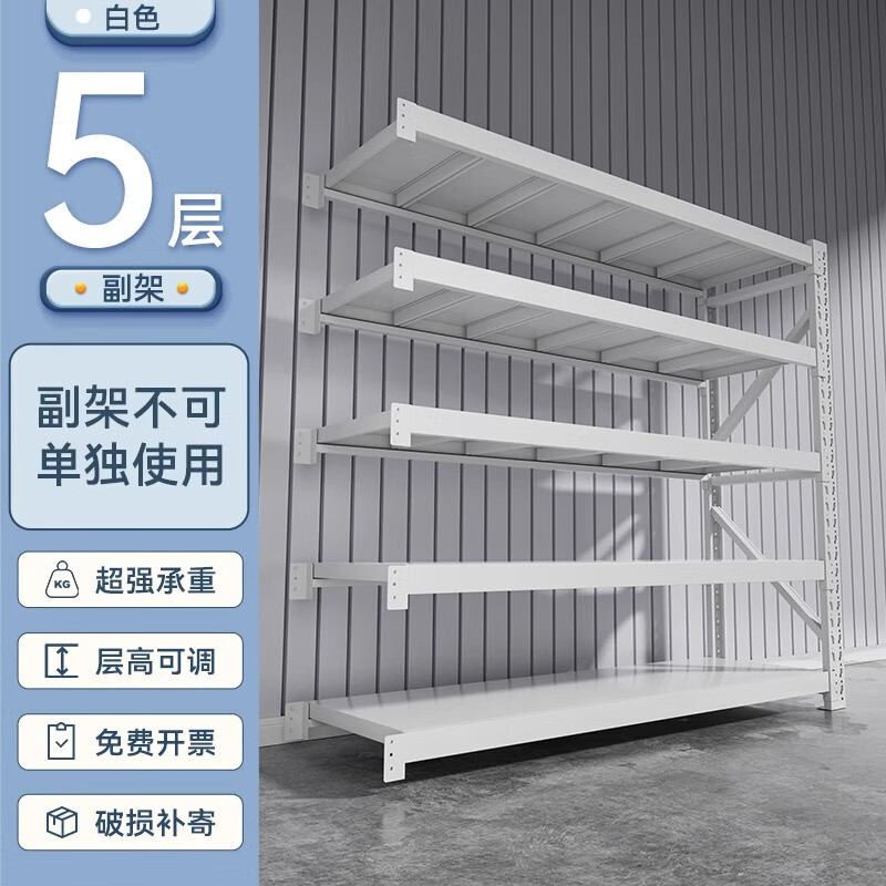 建耀货架仓储置物架库房家用多层储物架加厚重型储物铁架 白色-五层-副架 推荐款150*50*200 承重210KG/层