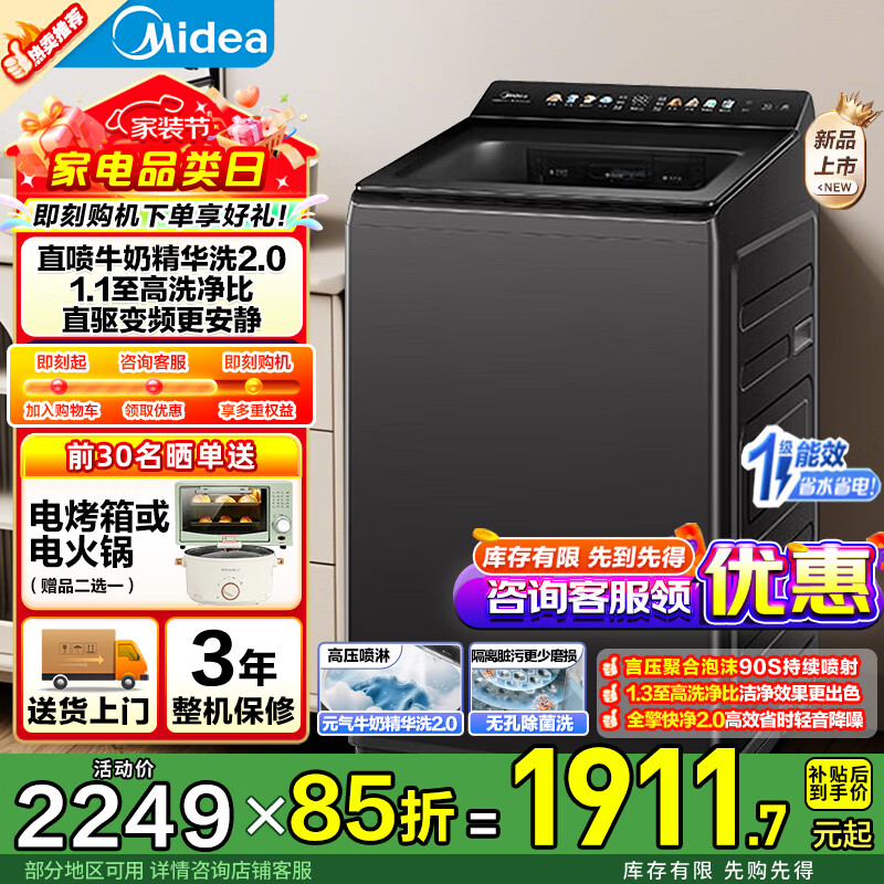 美的(Midea)波轮洗衣机全自动 家用 超净洗 抗菌螨 升级一级能效 家用大容量低音洗衣机 以旧换新 【4-5人使用】 波轮 10kg F2新品直驱快净2.0