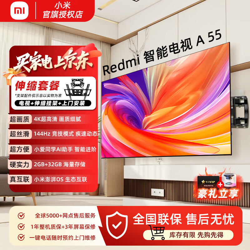 小米电视55英寸 Redmi A55节能版 2025款 120Hz高刷 远场语音电视 L55RB-RA 以旧换新 55英寸 【电视机+伸缩挂架+安装】