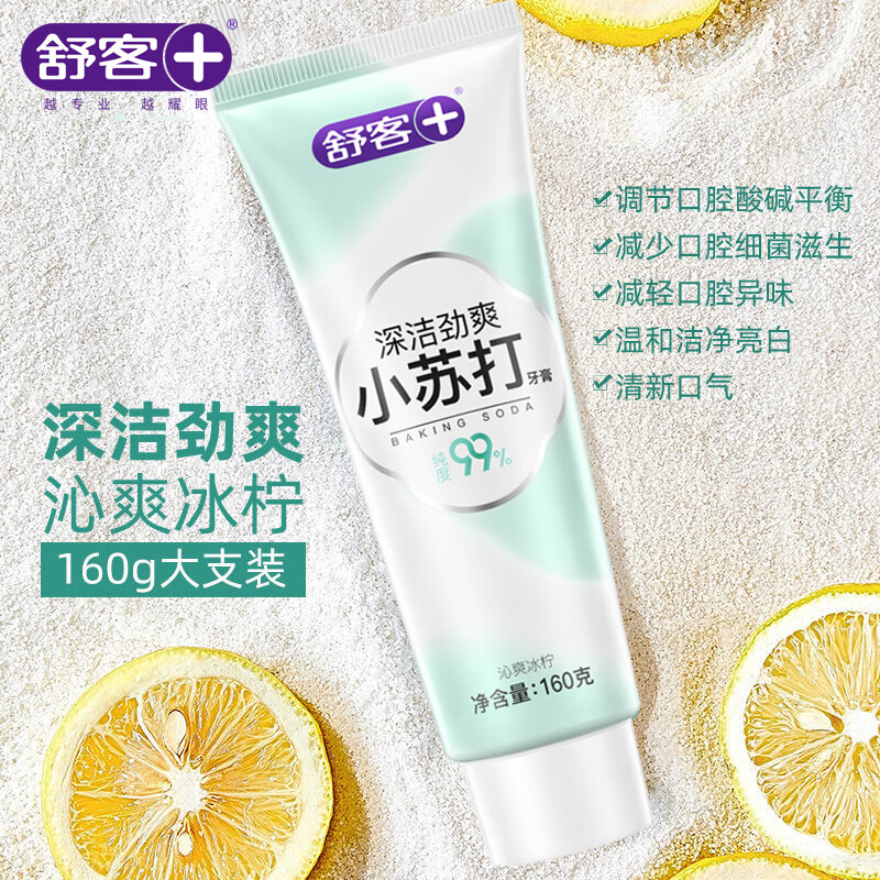 舒客小苏打牙膏美白清新口气臭牙齿炫白牙黄烟渍牙渍牙垢薄荷味 深洁劲爽 160g*1支
