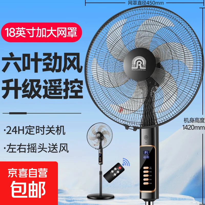 容声电风扇家用落地扇可摇头电扇大风力制冷卧室办公室宿舍大风量风扇可伸缩家用扇 18英寸【升级六叶】大风量四档强劲风遥控款
