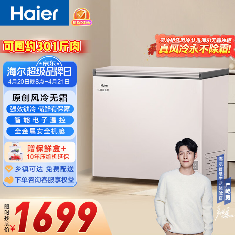 海尔(Haier)159/201/242升风冷无霜家用商用冰柜 冷藏冷冻柜小冰柜家用商用母乳小型冰箱冷柜以旧换新 BC/BD-201WGHEG9D 201L