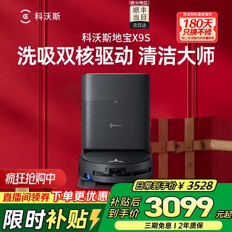 科沃斯(ECOVACS)X9S扫地机器人恒压滚筒洗地机器人扫拖一体自动清洗智能家用上下水洗拖吸一体 X9S水箱