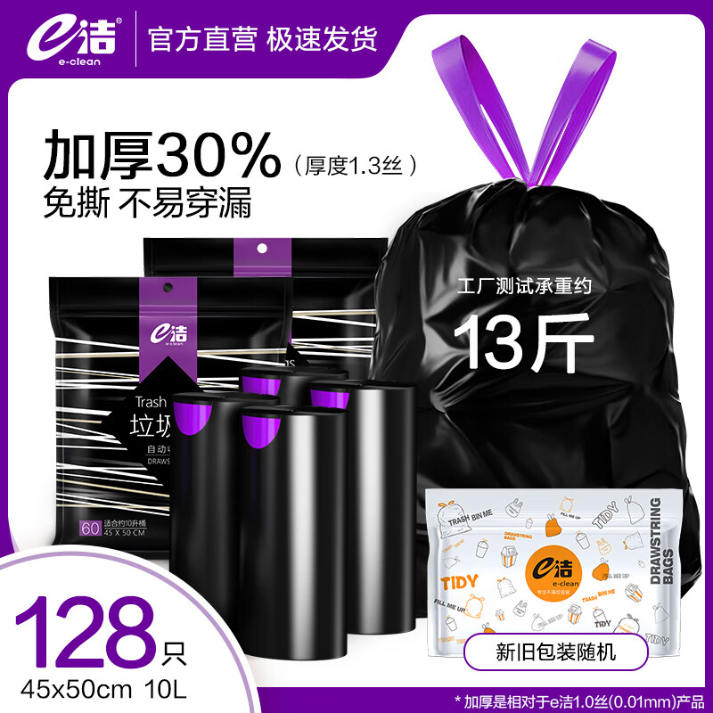 e洁垃圾袋手提式背心家用塑料袋子加厚 128只 10L加厚30% 免撕 45*50cm