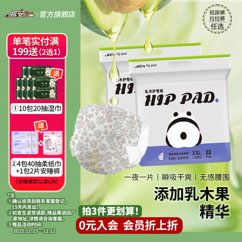 祺安T1熊猫乳木果油宝宝护臀系列超薄透气新生儿尿裤拉拉裤成长裤 2包发货纸尿裤XXL码共44片【更优惠】