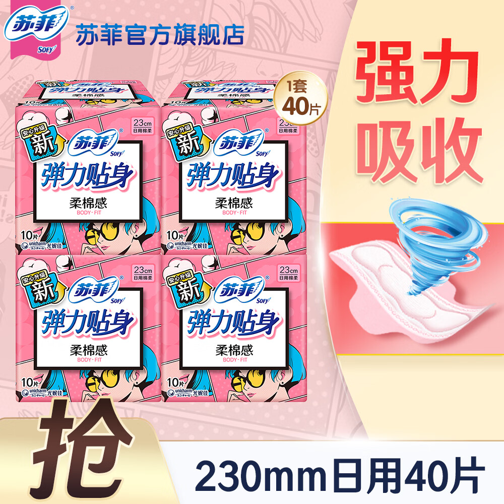 苏菲卫生巾弹力贴身230超熟睡290姨妈巾日夜组合装官方旗舰店 弹力贴身230mm40片