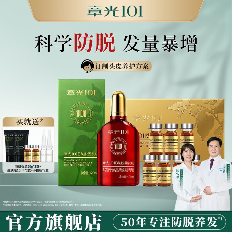 章光101防脱醒肤液防脱固发液浓密发养防脱男女生减少脱发国货 【加强版】防脱固发套装 10ml*15支 +120ml*瓶
