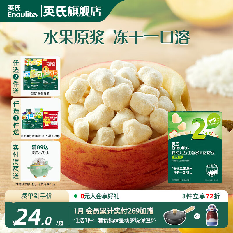 英氏(Engnice)【溶豆专区】溶豆婴幼儿零食水果益生菌DHA牛奶6个月以上 【益生菌水果】2阶苹果味18g