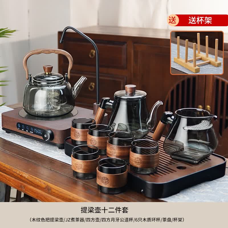 全度玻璃提梁壶家用小型电陶炉煮茶器烧水壶大容量保温玻璃茶壶 【升级上水至尊版12件套】光面款