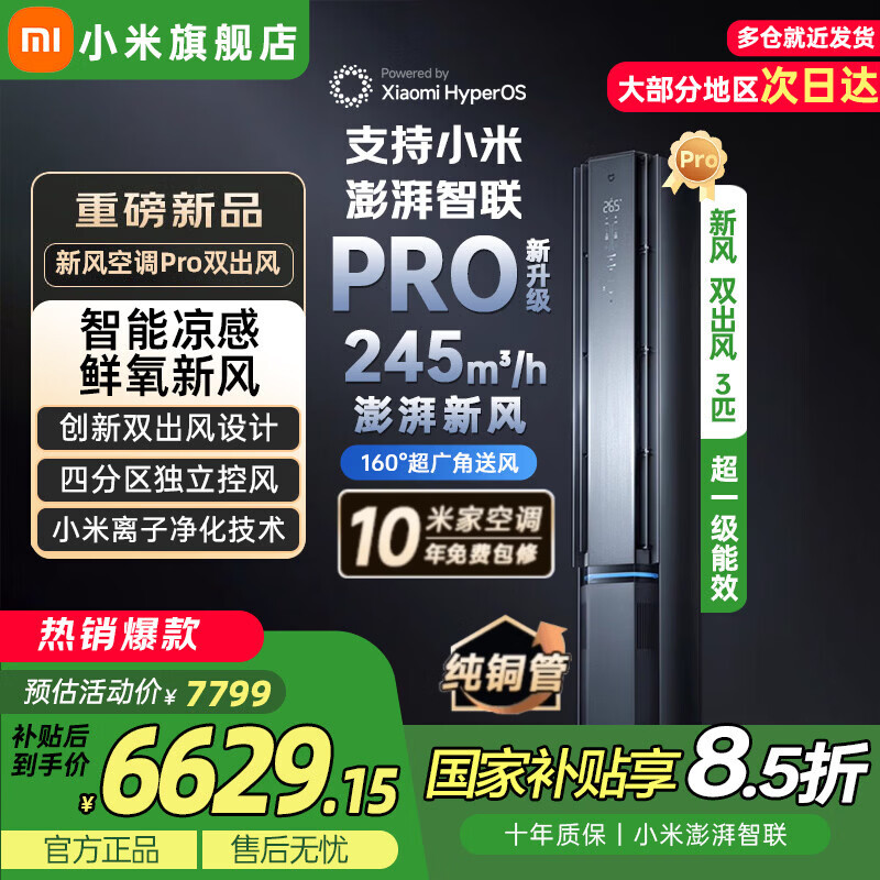 小米(MI)空调米家2匹/3匹巨省电Pro 立式柜机 大风口柔风新风自然风快速制冷暖变频家用低噪智能互联自清洁 3匹 一级能效 双出风新风Pro【超大新风量】