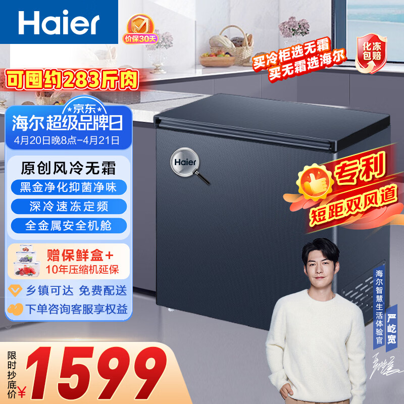 海尔(Haier)159/201/242升风冷无霜家用商用冰柜 冷藏冷冻柜小冰柜家用商用母乳小型冰箱冷柜以旧换新 -38℃|黑金净化 159WGHED 159L