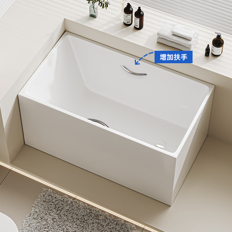 浪鲸(SSWW)卫浴独立式小户型浴缸家用成人亚克力深泡方形薄边泡澡浴池缸1051 +280定制内扶手,详咨客服【定制周期25天】