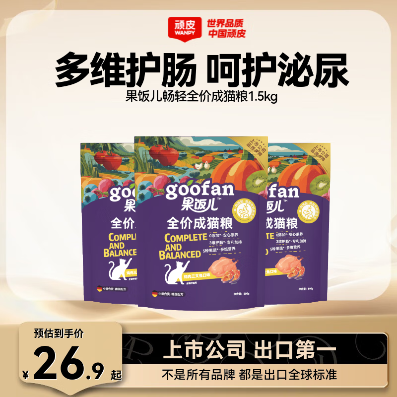顽皮猫粮 果饭儿冻干双拼粮 出口级全价成猫粮全阶段幼猫粮 醇鲜升级 【配方优化】鸡肉三文鱼成猫粮1.5kg