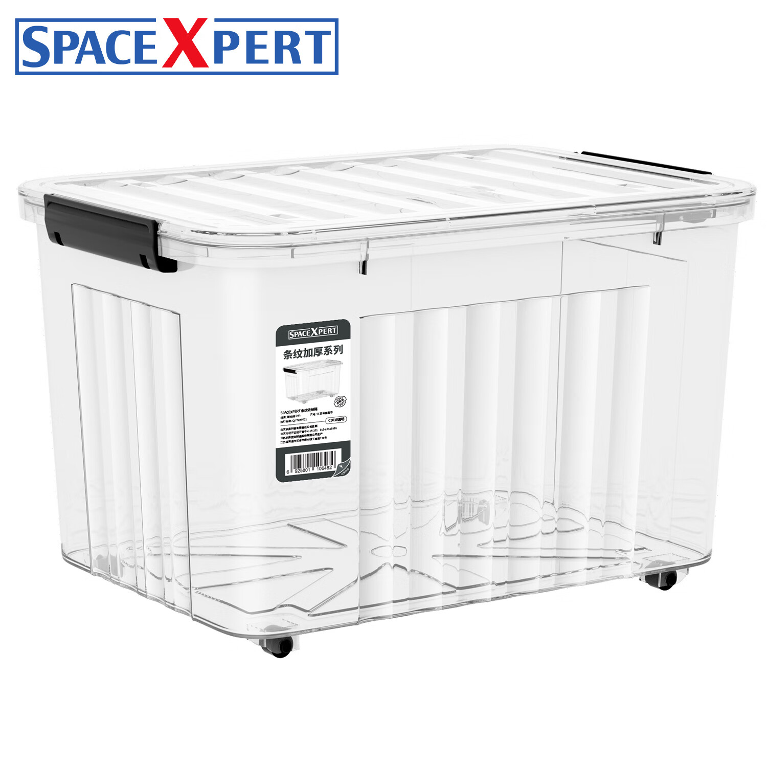 SPACEXPERT塑料收纳箱特大号储物箱学生书箱儿童玩具整理搬家打包周转箱 透明 【实测盛水容积80L】三只装