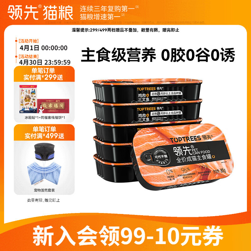 领先猫主食罐 成猫湿粮无谷全价全期营养猫罐头 【成猫罐】鸡肉三文鱼6罐