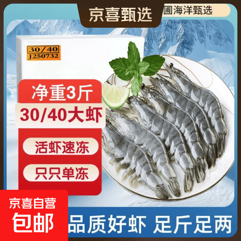 南美白对虾 厄瓜多尔盐冻大虾 微信域爆款生鲜虾类火锅食材 南美白对虾3040/盒 3斤(净重)