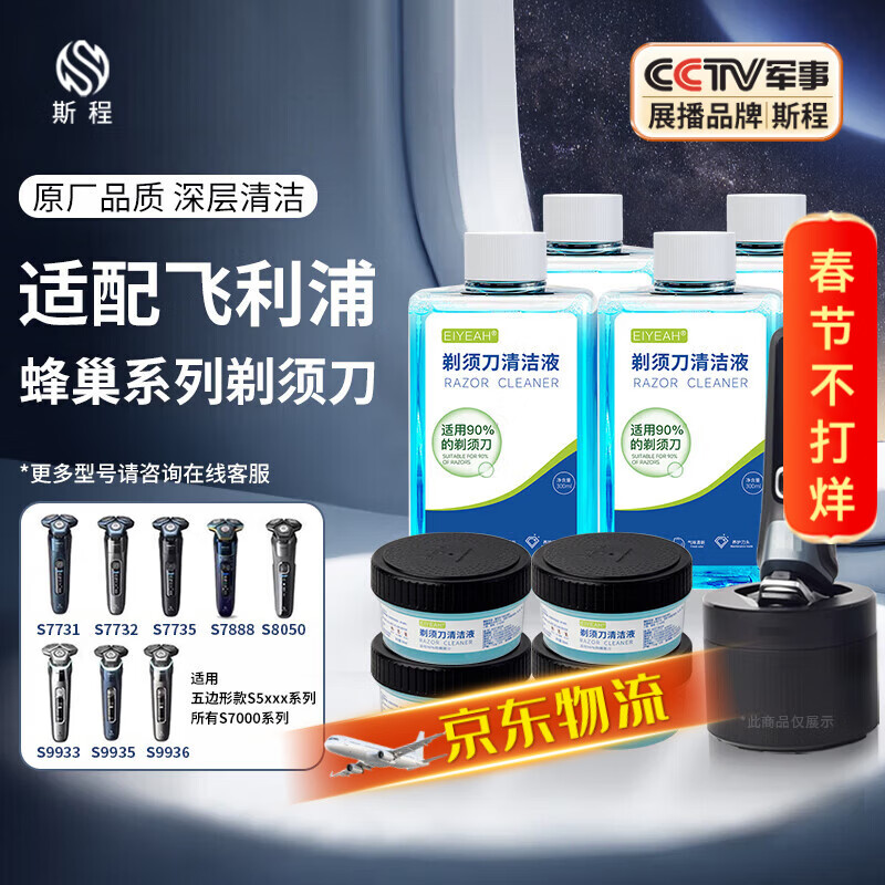 斯程适配飞利浦剃须刀清洁液替换装适用S7系/S8系/S9系高端系列刮胡刀 S7731/8050/9936通用清洗液CC13 品质|蜂巢系列专用清洗液4瓶+4瓶补充液