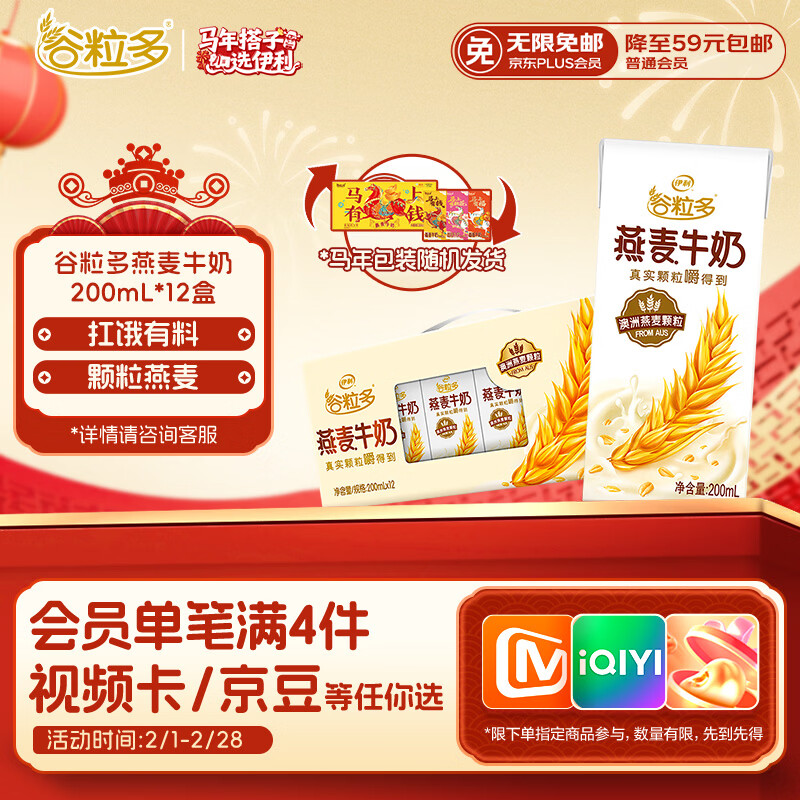 伊利谷粒多燕麦牛奶整箱 200ml*12盒 年货礼盒装 普通装混发 11月底产