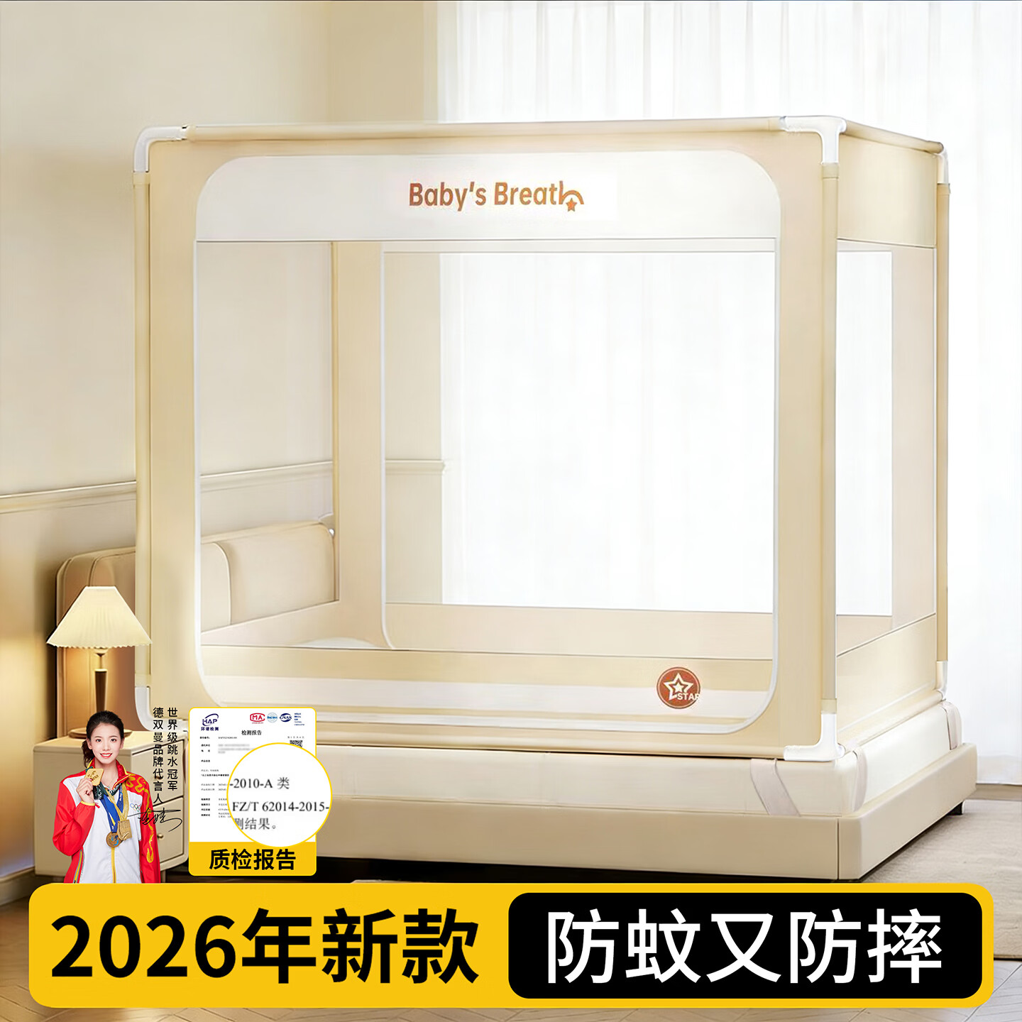 德双曼防摔蚊帐1.8x2米家用免安装婴儿防摔卧室1.5米x2米床三开门蚊帐 适用1.5*2.0m床【全底云柔米】A类帐纱